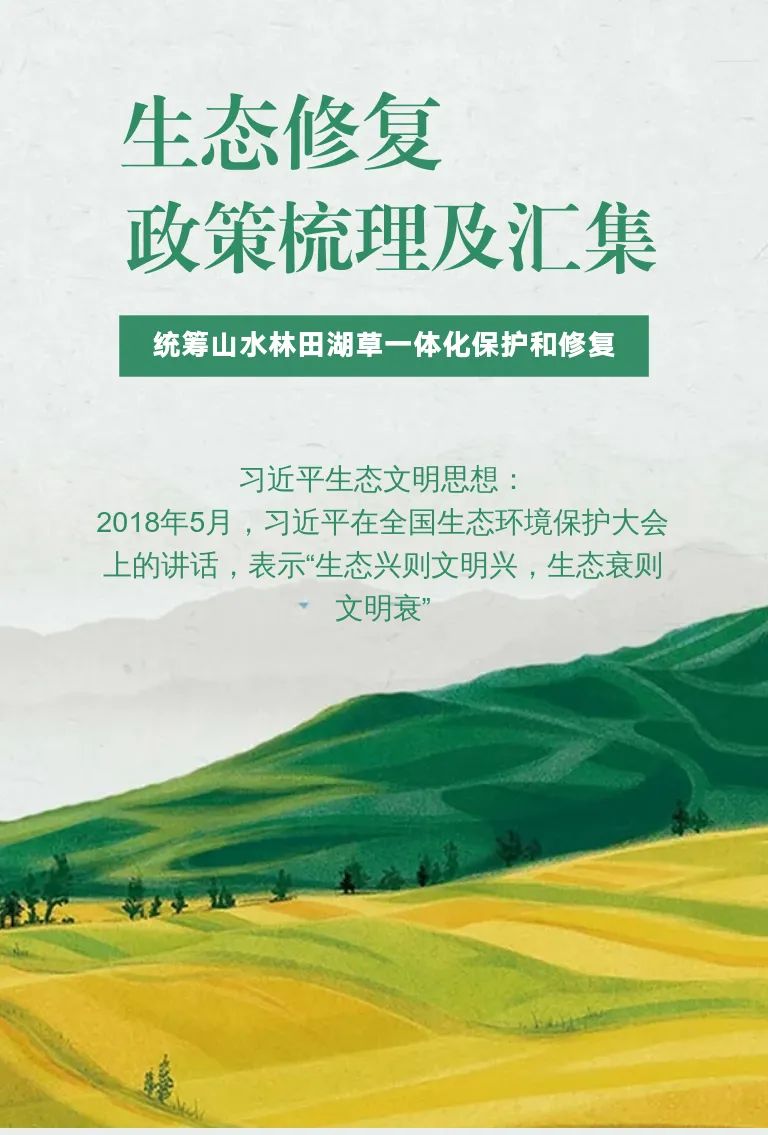 组建自然资源部统一行使全民所有自然资源资产所有者职责,统一行使所有国土空间用途管制和生态保护修复职责,是2018年国家政府体制改革的重大突破。本文通过梳理汇集自2017年至今,从国家到各省市逐年发布的关于生态修复的政策,是为生态修复信息化路径研究做铺垫,欢迎各单位分享交流相关思路。